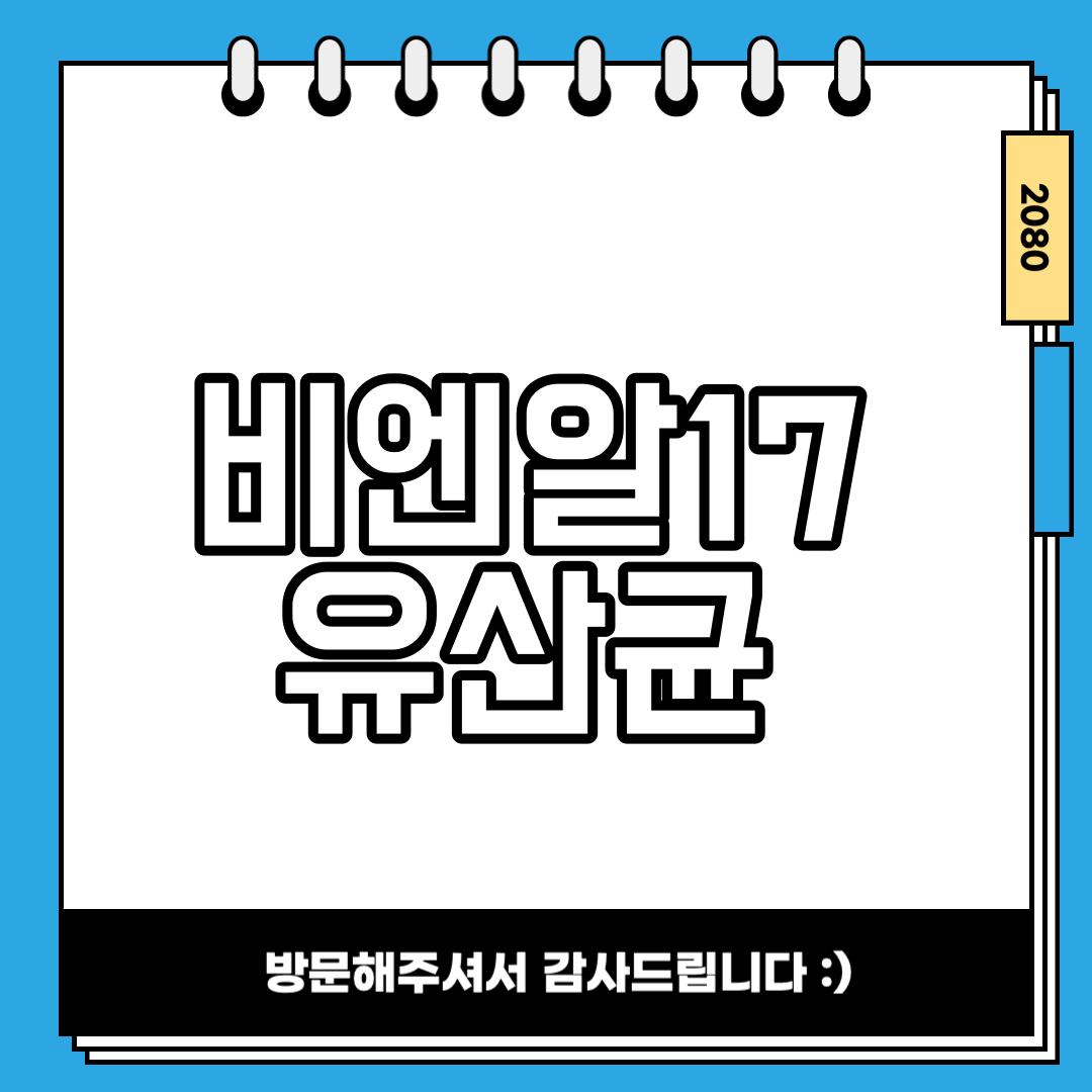 안녕하세요, 여러분! 오늘은 체중 감량과 당뇨 예방에 뛰어난 효능을 자랑하는 비엔알 17 유산균에 대해 알아보려고 합니다. 건강을 위한 지혜로운 선택, 비엔알 17과 함께하면 새로운 건강한 삶이 여러분을 기다립니다.